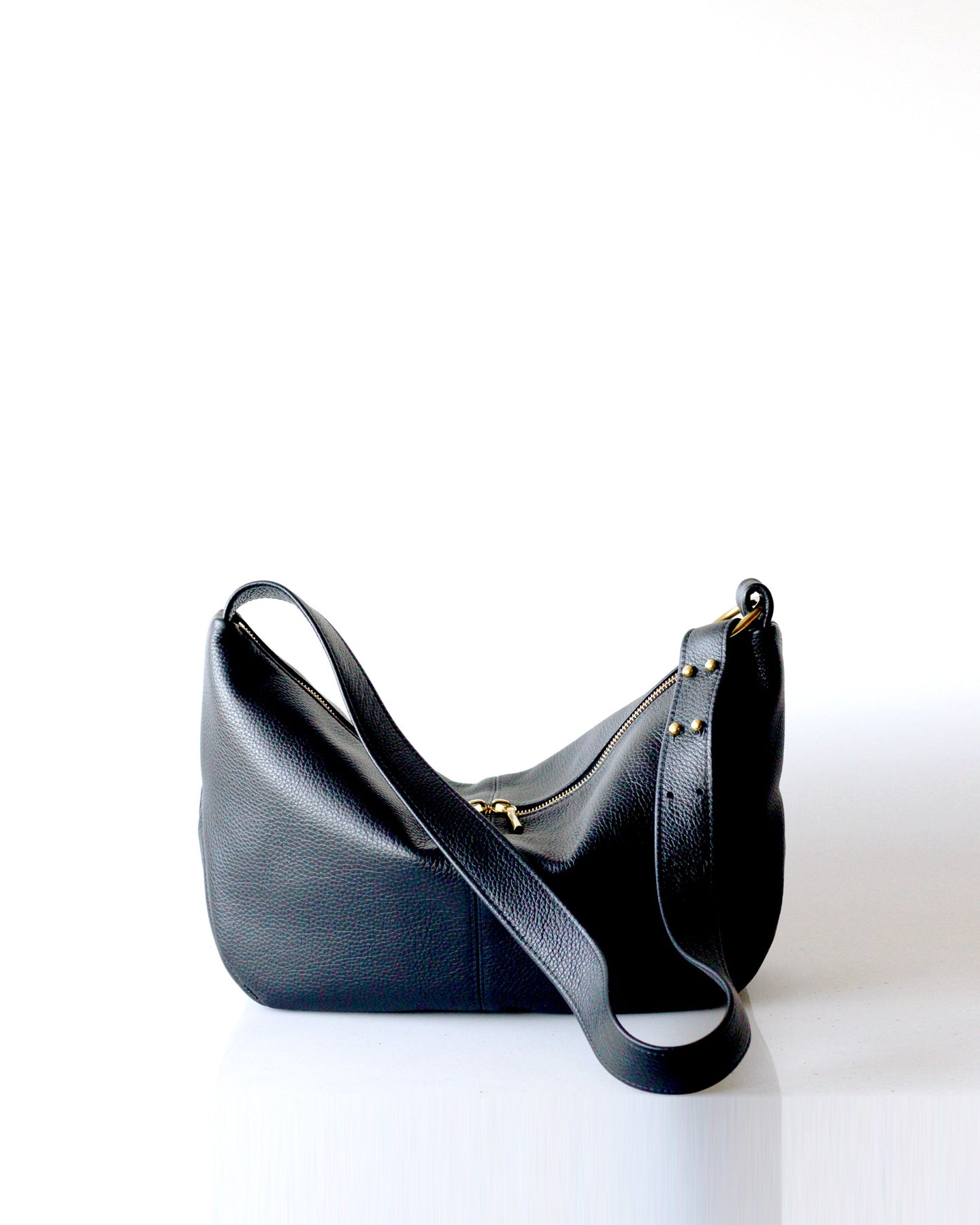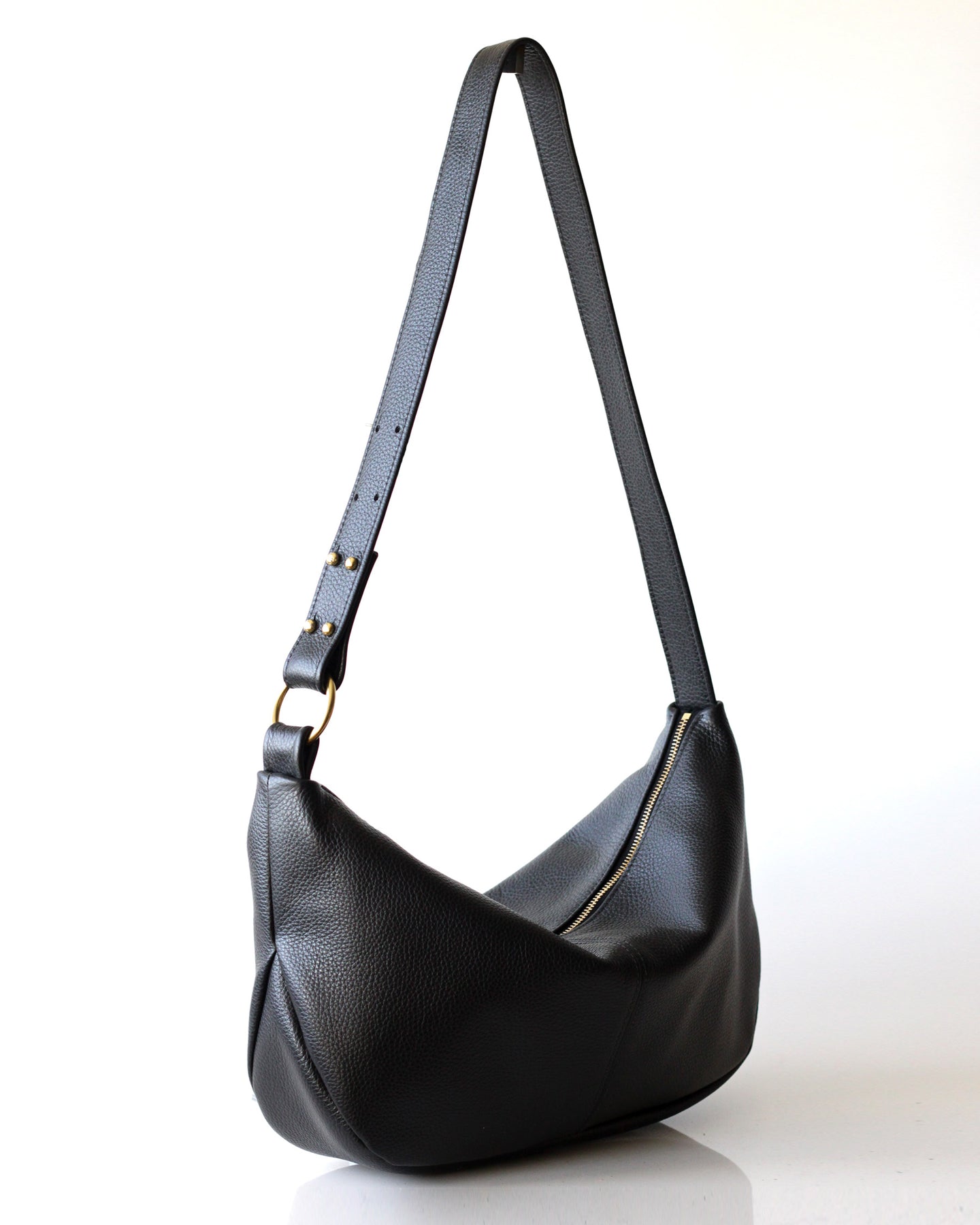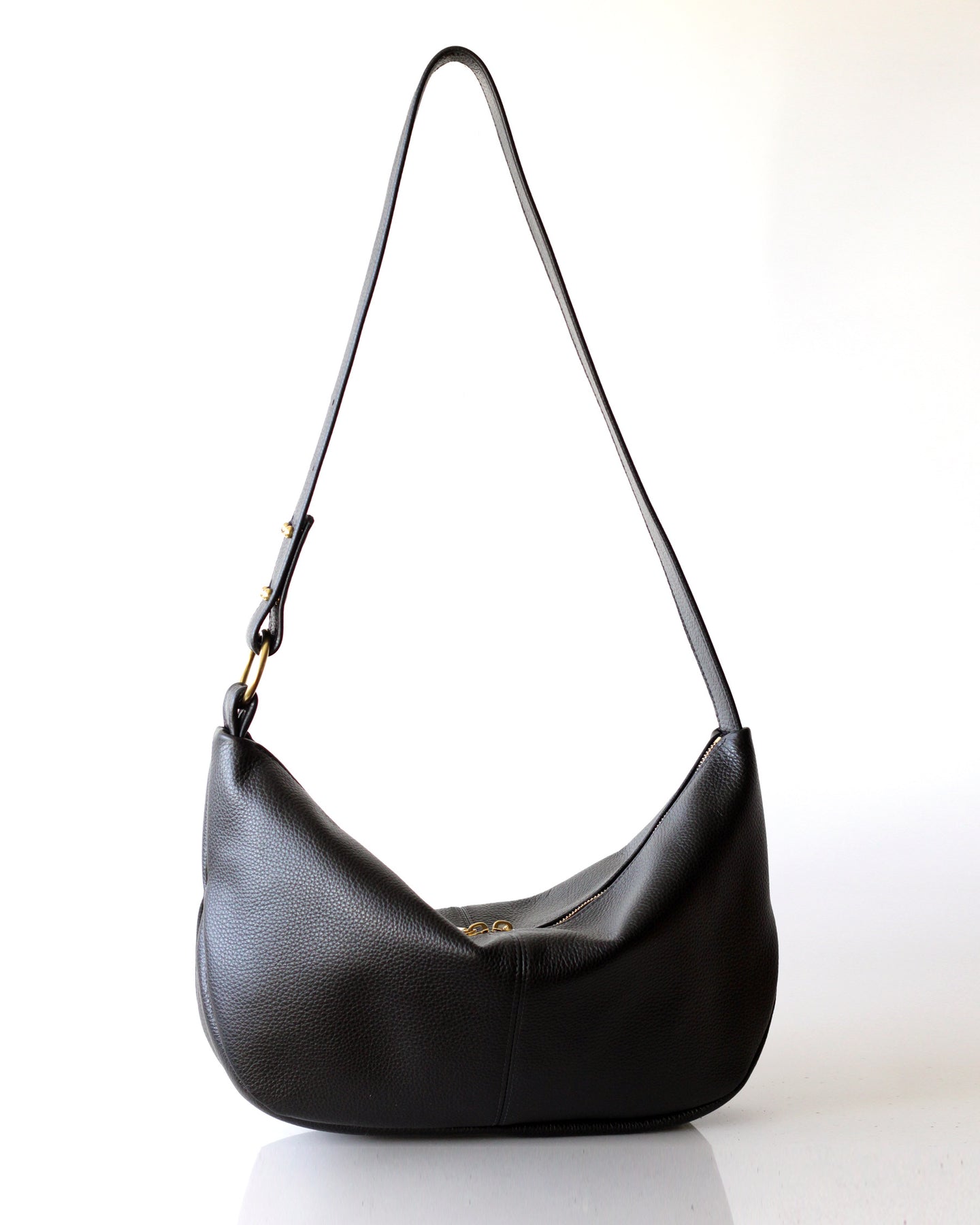 The Roberta Sling reimagines the classic hobo with a crescent silhouette and soft, slouchy shape. Sleek, relaxed, and feminine, it moves intuitively while holding all your daily essentials, with room for extras. A wide adjustable ribbon strap allows the bag to be worn over the shoulder or crossbody, while the two-way top zipper adds a subtle design detail.